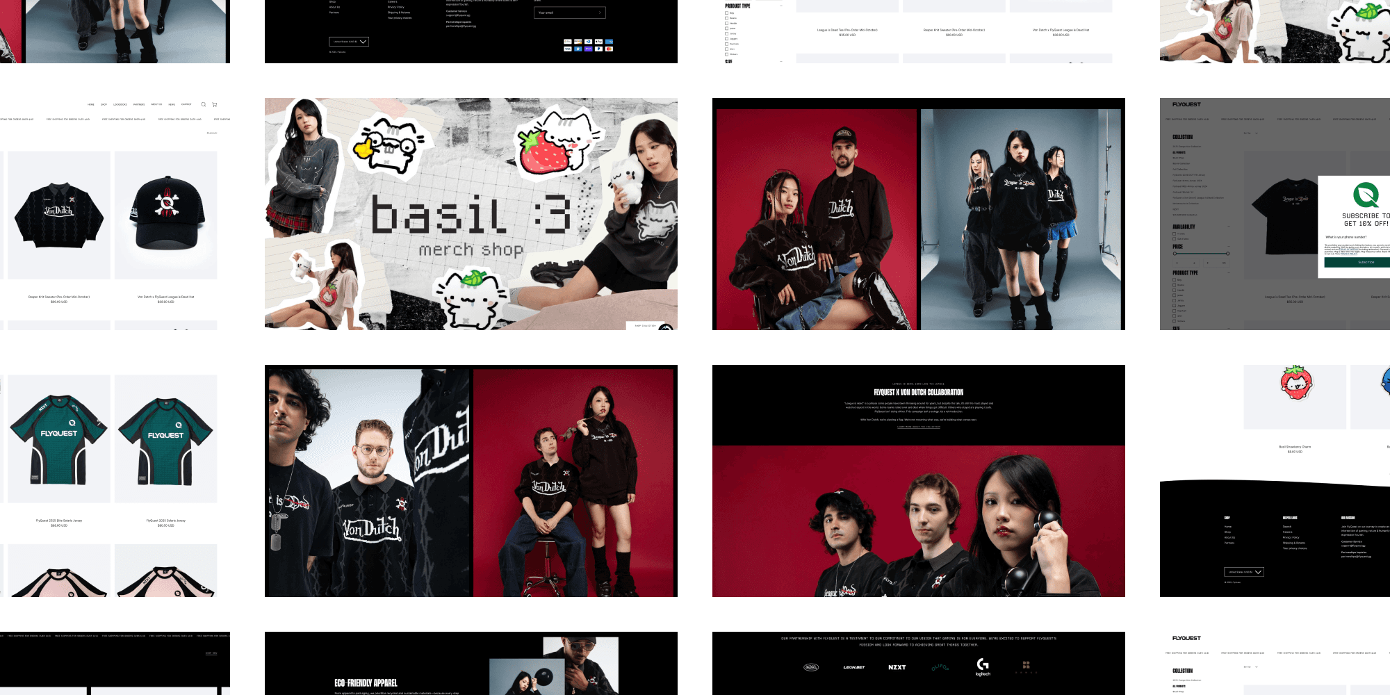 FlyQuest’s digital presence needed to balance two core pillars: competitive esports and lifestyle collaborations. To tell both stories effectively, we structured the website around modular content blocks that could adapt to different types of activations. For example, the Merch & Apparel section highlights collaborations with global fashion brands like Von Dutch, while the Esports Hub focuses on schedules, rosters, and match results. Both sections share the same design system, but the content and storytelling shift depending on the audience and context.